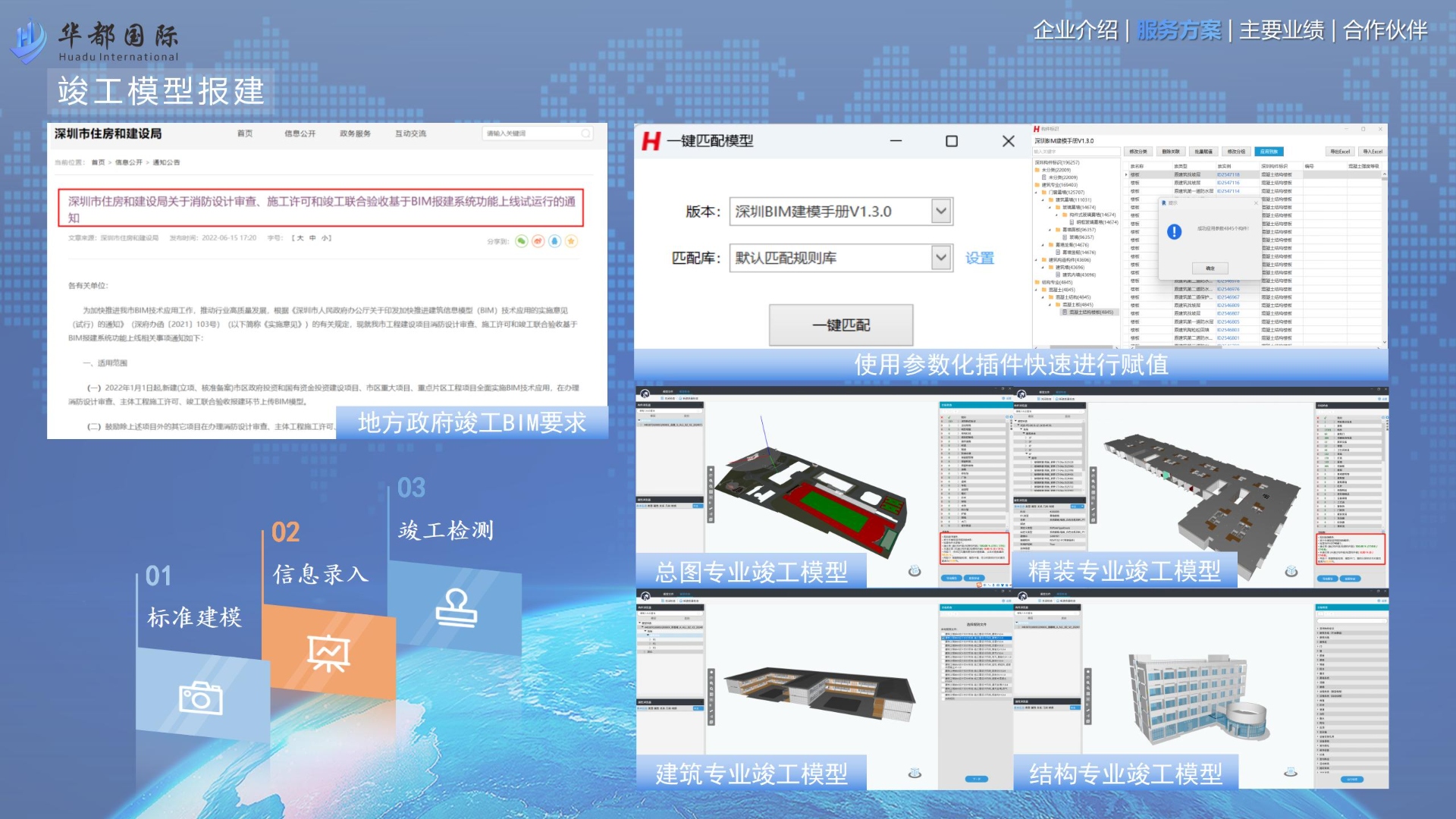 依據《建設工程信息模型交付標準》整合各階段BIM數據,生成符合規劃驗收要求的LOD500竣工模型。集成設備參數、質保信息及隱蔽工程記錄,輔助政府數字化審圖與不動產登記.